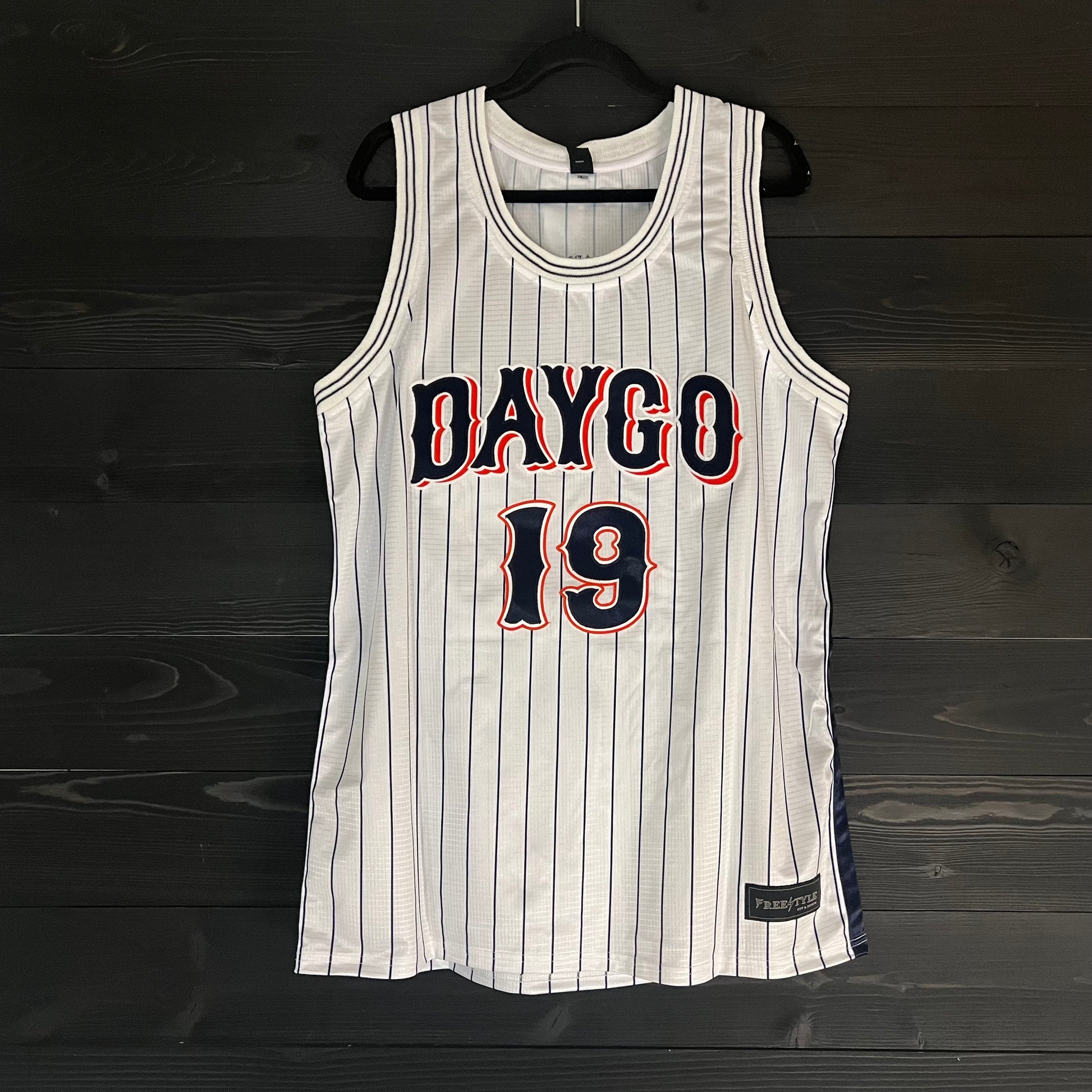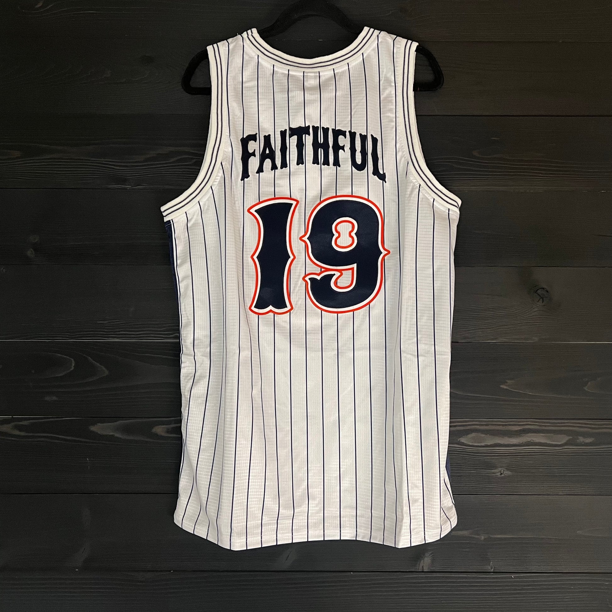 A-019m DAYGO FAITHFUL #19 - White Orange Navy Pinstripes ALL SIZES - MADE TO ORDER