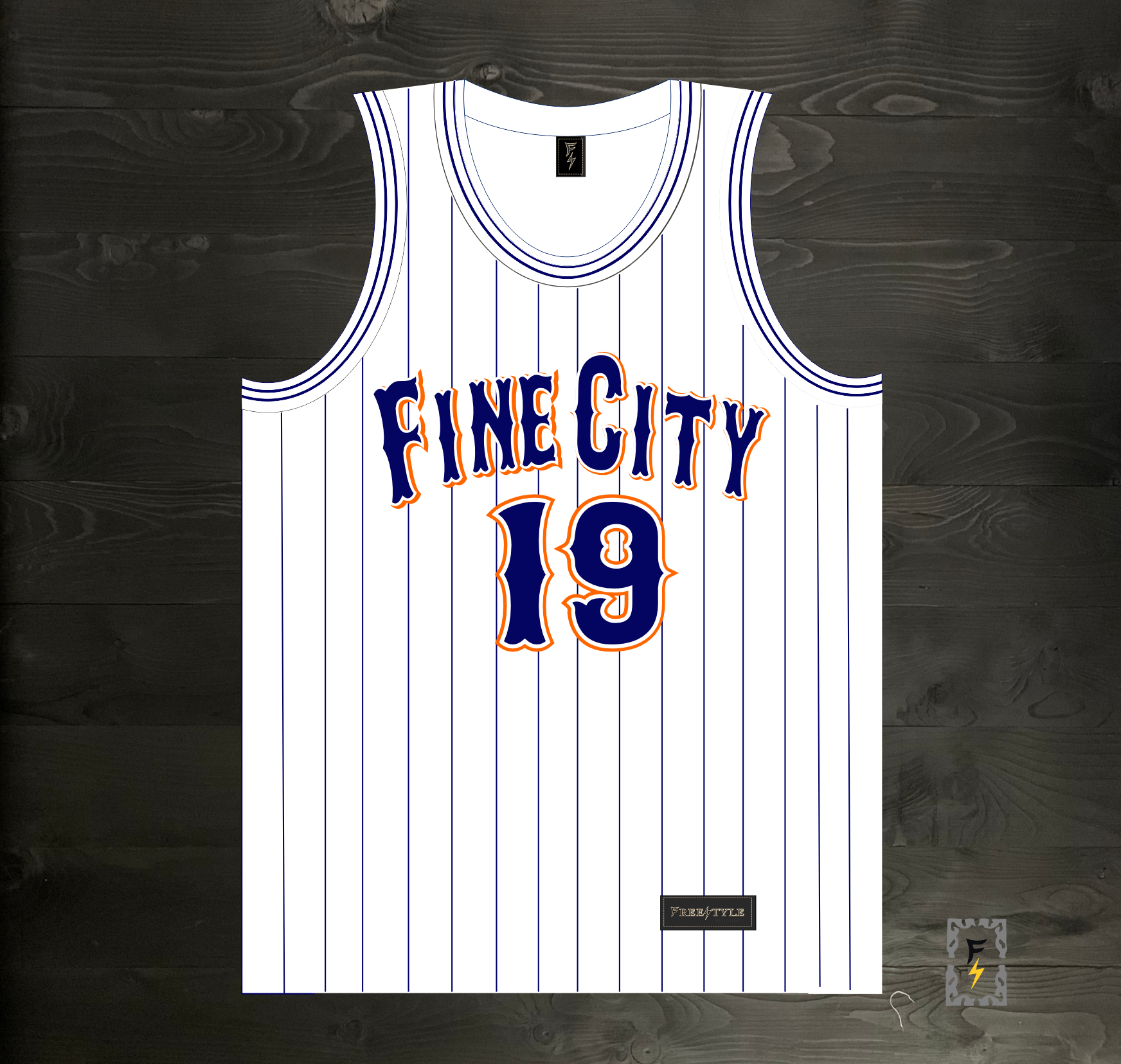 A-019m FINE CITY FAITHFUL #19 - White Orange Navy Pinstripes ALL SIZES - MADE TO ORDER