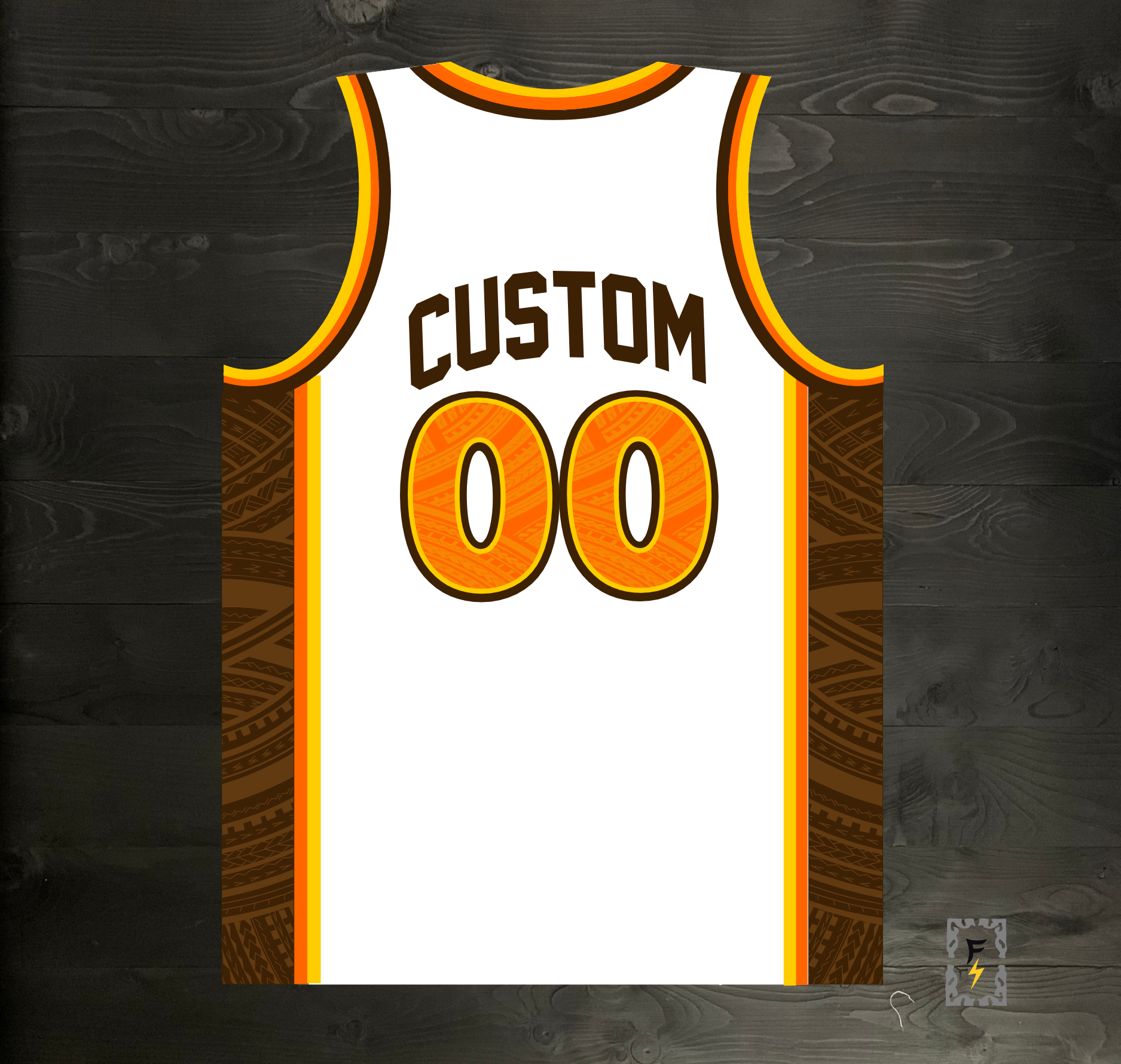 A-023m CUSTOM White Brown Orange Tribalz Basketball Jersey ALL SIZES - MADE ORDER