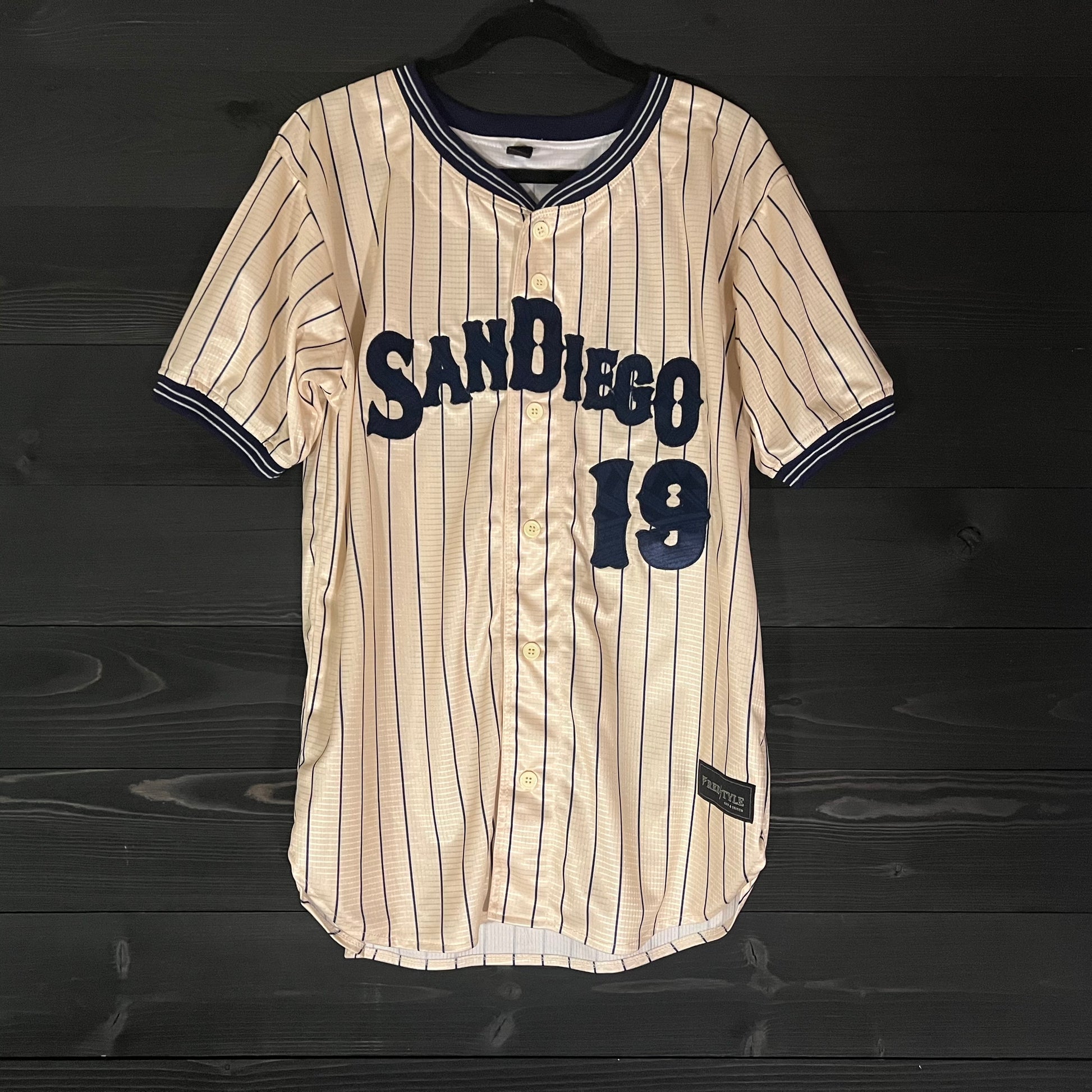 A-051a #19 FAITHFUL Baseball Creme Navy Pinstripes - ALL SIZES