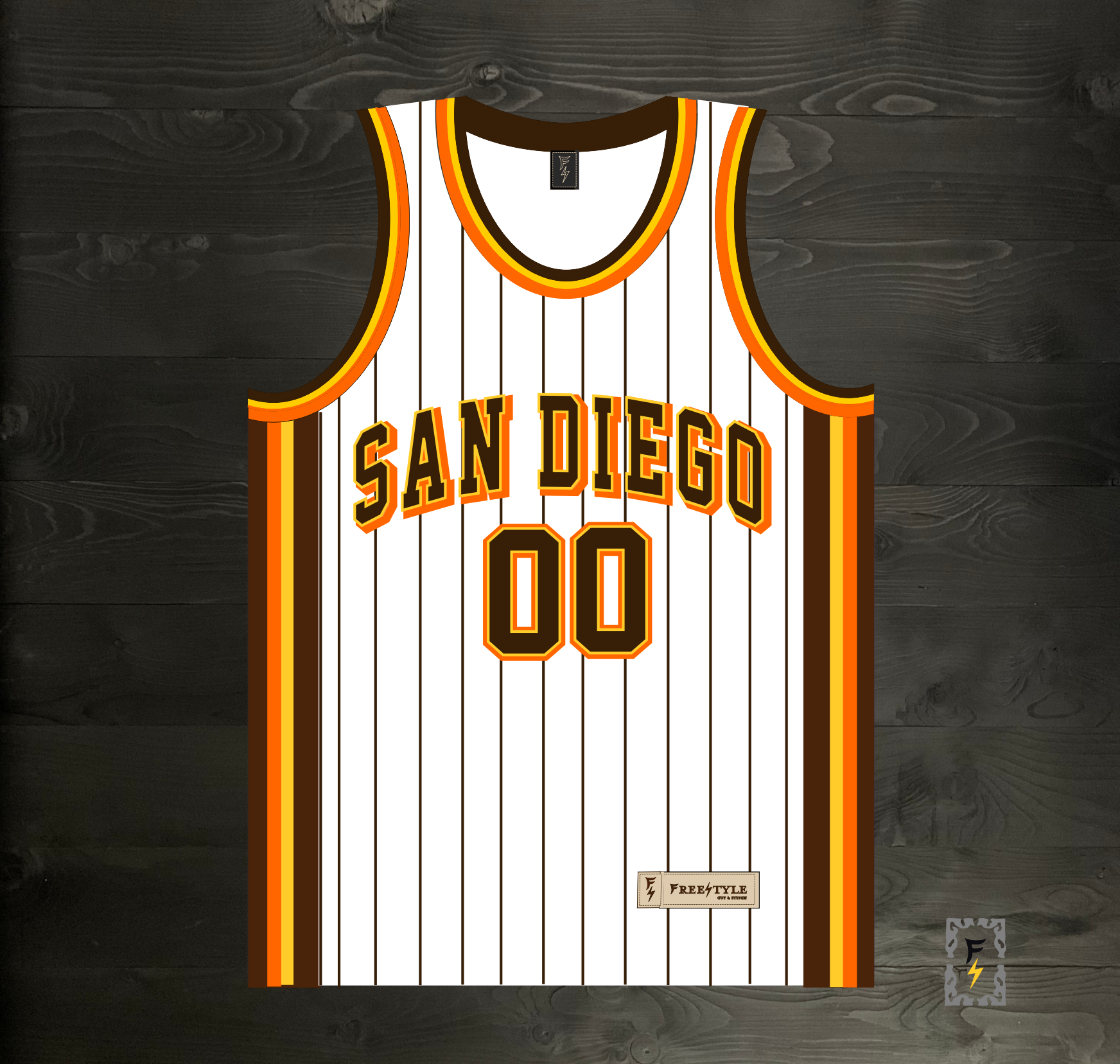 A-114m CUSTOM Name and # White Brown Yellow Orange w Pinstripes Basketball Jersey - MADE TO ORDER