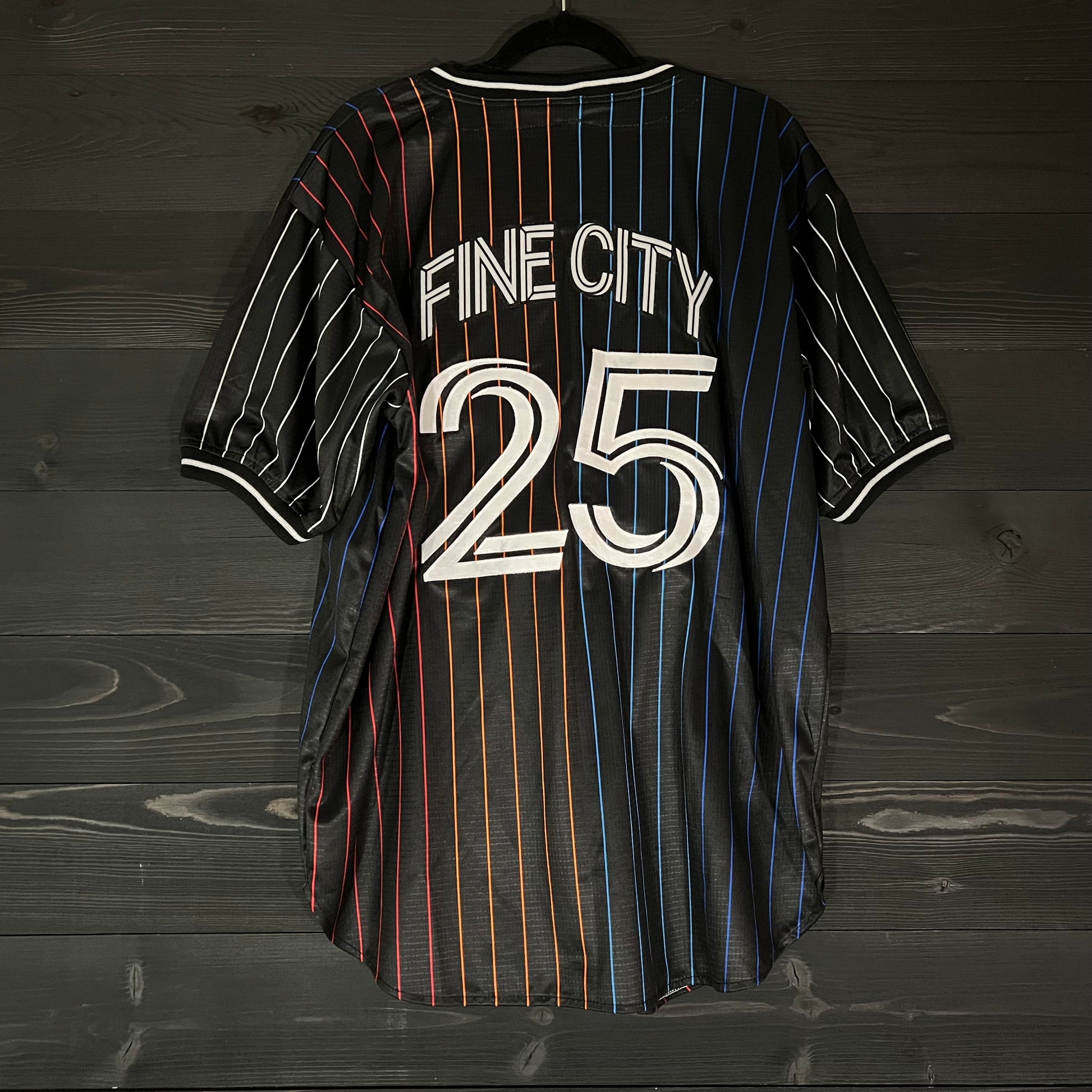 F-000m CUSTOM NAME and # SD Black w Multi Color Pinstripes Baseball Jersey - MADE TO ORDER