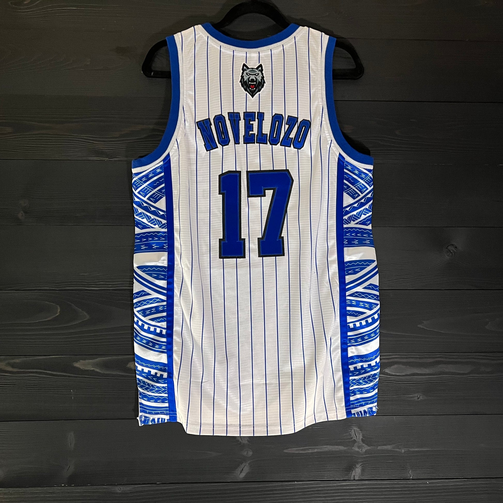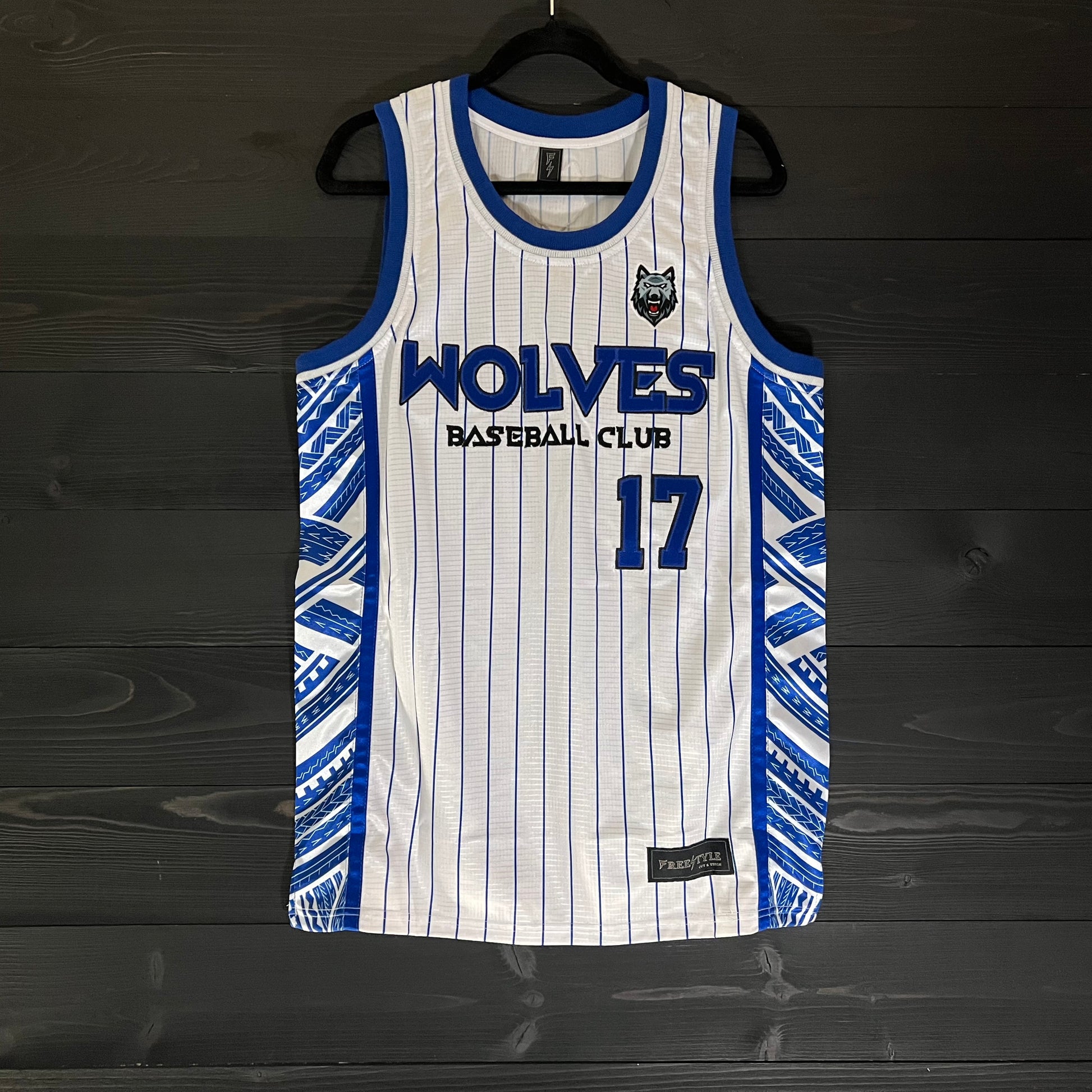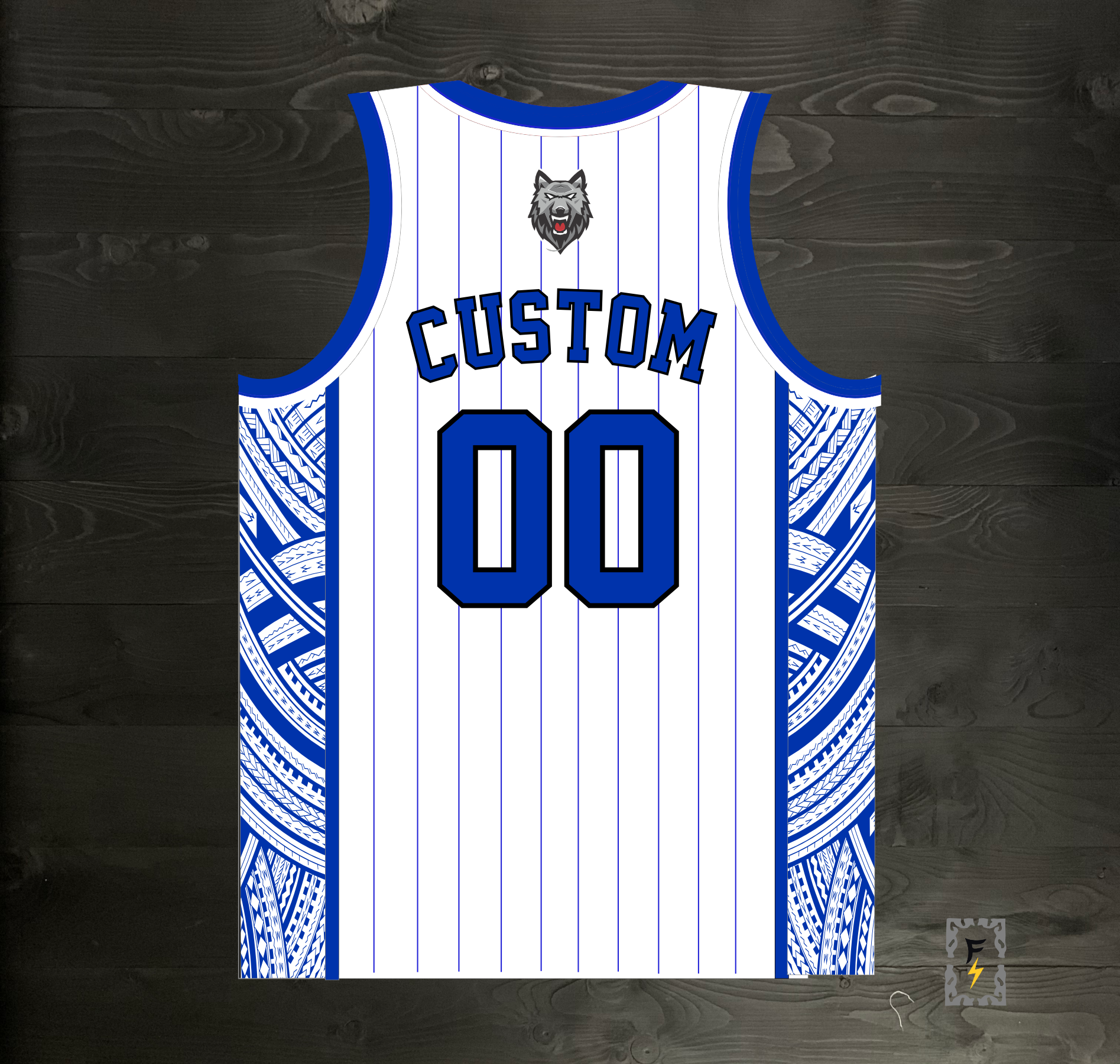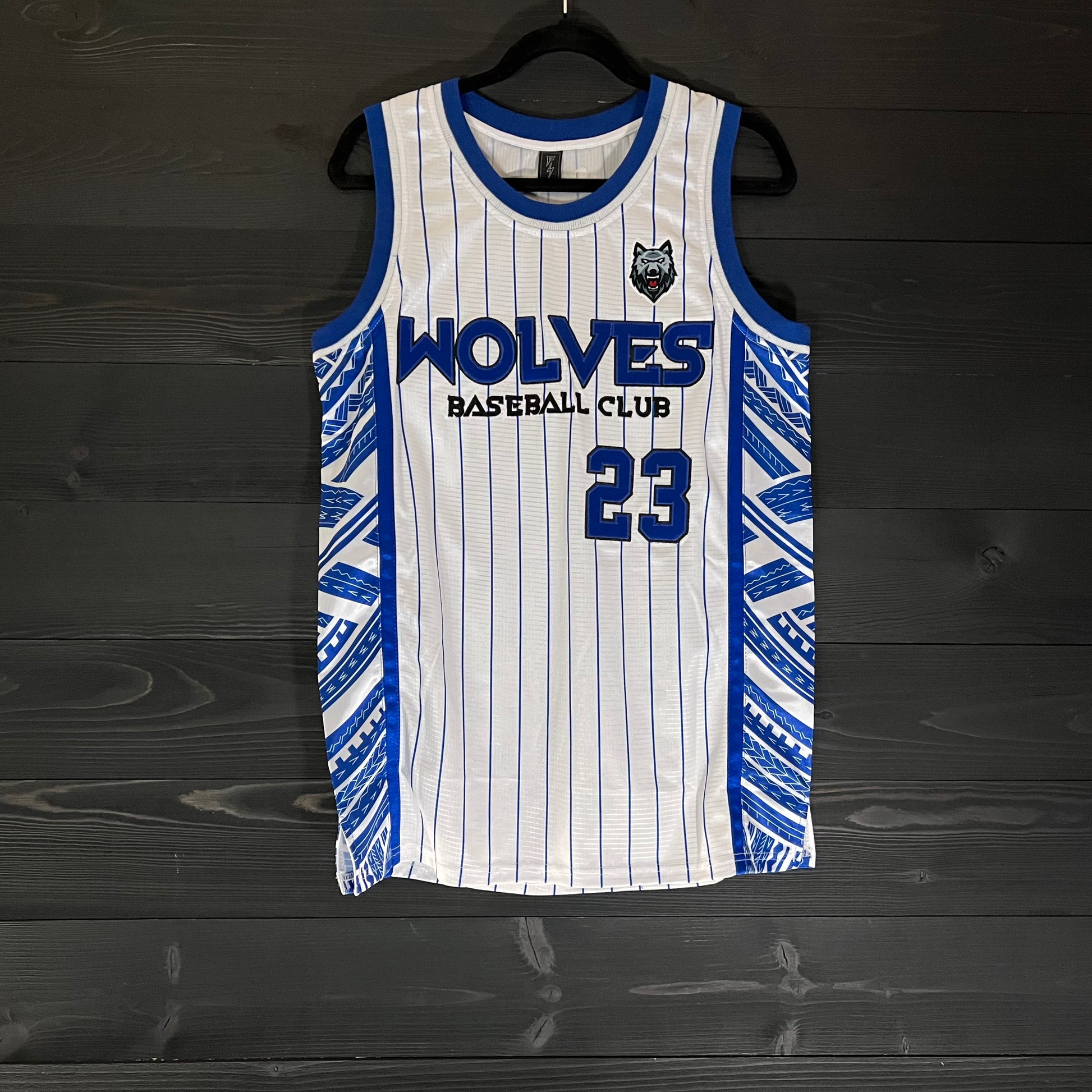 L-003m CUSTOM NAME AND # San Diego Wolves White Royal Blue Pinstripes - MADE TO ORDER