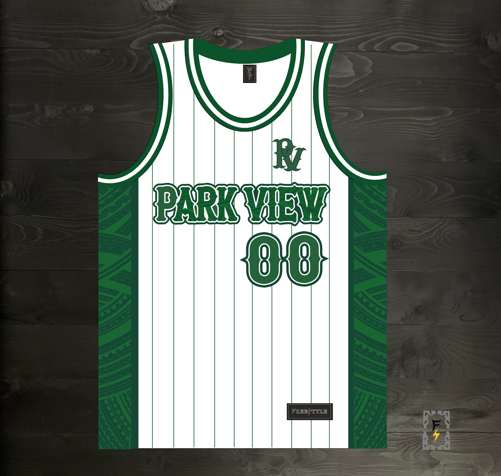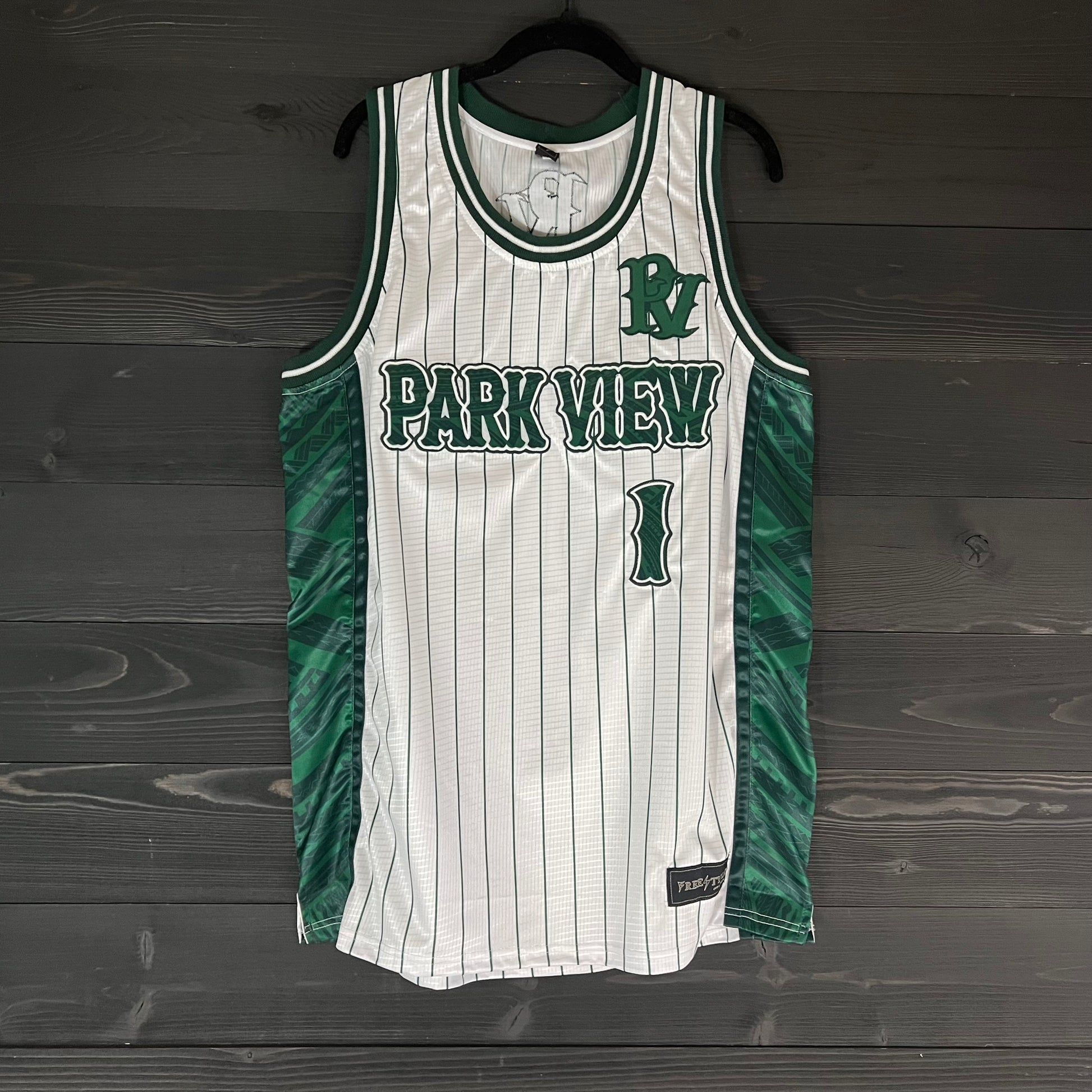 L-005m CUSTOM NAME AND # Park View White Green w Pinstripes - MADE TO ORDER