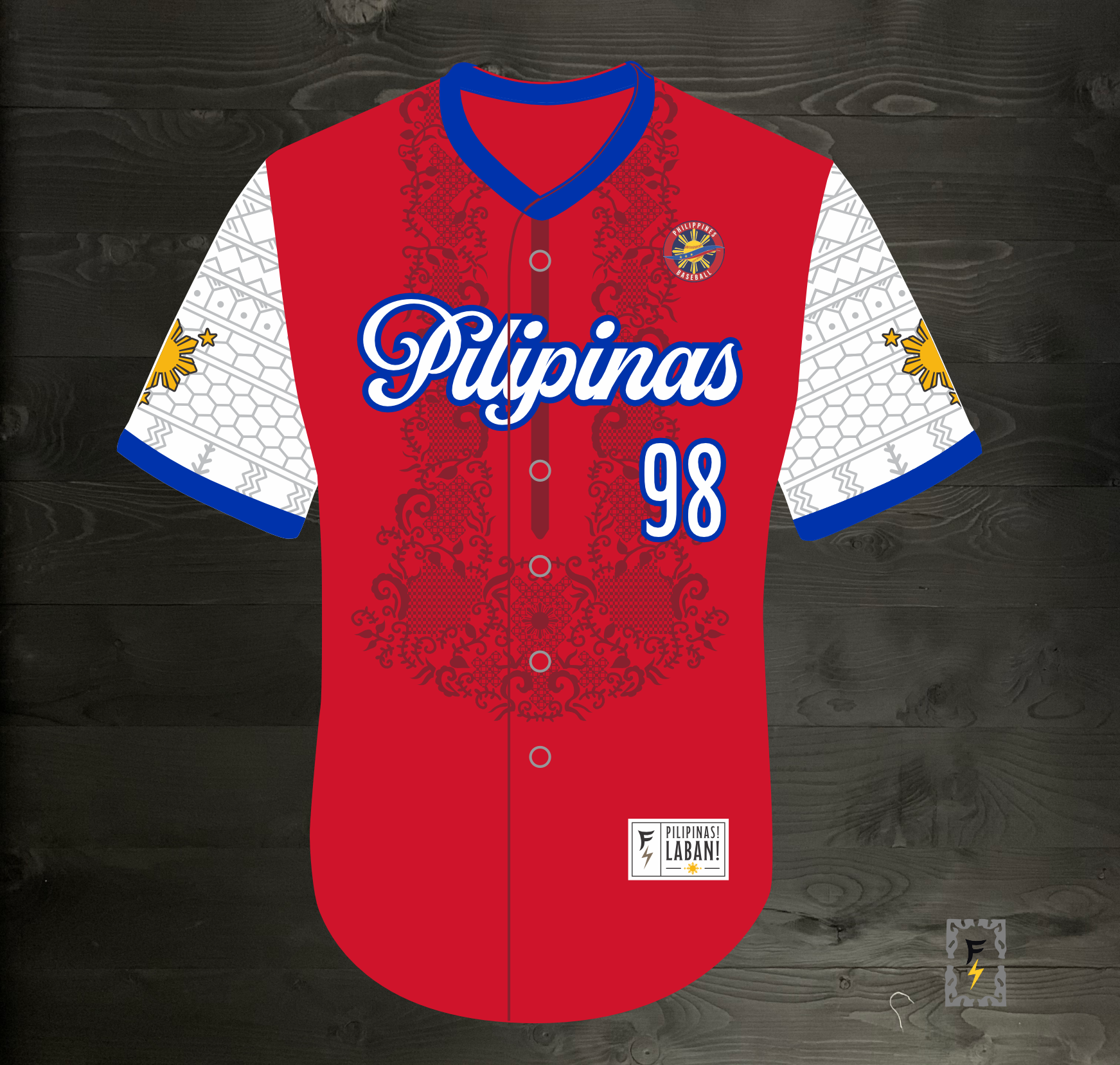 L-103m FILIPINO #98 Pilipinas Philippines Baseball Group (PBG) Red Button Up Baseball Jersey - MADE TO ORDER