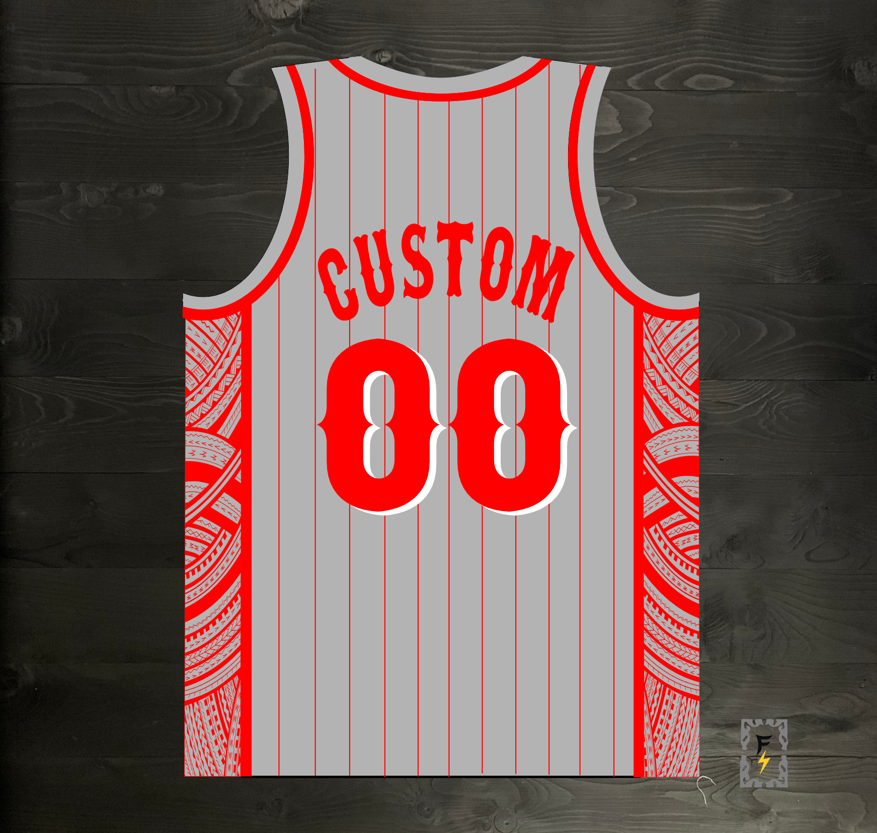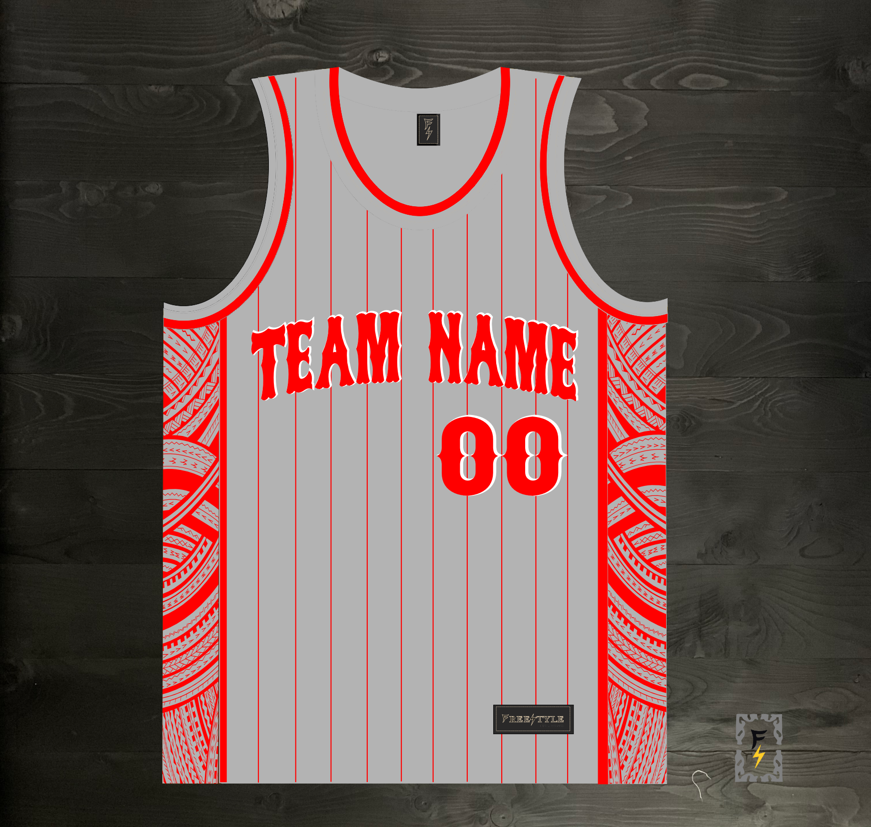M-364m CUSTOM TEAM Gray Red Pinstripes Tribalz Basketball Jersey ALL SIZES - MADE ORDER